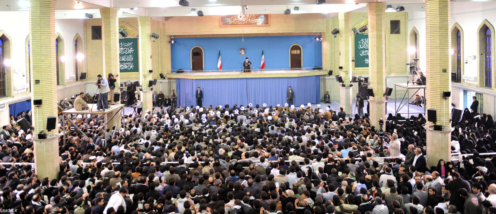 حضرت آیت الله خامنه ای رهبر معظم انقلاب اسلامی صبح امروز(چهارشنبه) در دیدار هزاران نفر از علماء، مسئولان و قشرهای مختلف مردم آذربایجان، با اشاره به حضور دهها میلیونی و بسیار پرشورتر و با نشاط تر مردم در راهپیمایی 22 بهمن امسال، چرائی این اعجاب آفرینی و عظمت ملت عزیز ایران را، بصیرت و موقع شناسی بی نظیر آنان دانستند و تأکید کردند: ملت ایران با این بصیرت، ایستادگی و حضور به هنگام در صحنه، هیچگاه شکست نخواهد خورد و در انتخابات 12 اسفند نیز ملت بار دیگر هوشیاری و موقع شناسی خود را نشان خواهد داد و با حضور پرشور و فراوان خود در انتخابات مجلس نهم، ضربه سخت دیگری به دشمن خواهد زد.